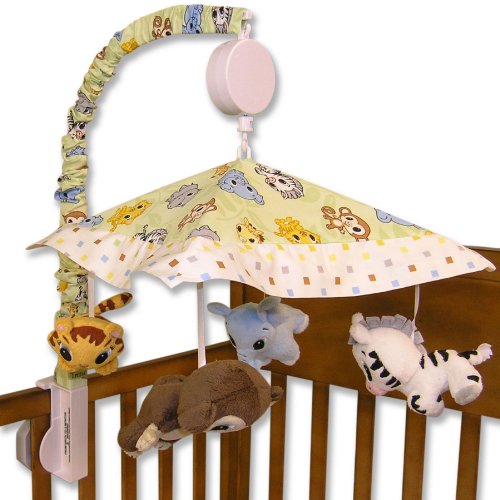105019 Features: -Zoo mobile. -Material: 100pct cotton. -Includes canopy, stuffed animals and slide cover. -Attaches easily to a crib side. -Encourage eye-tracking and sound-perception skills while listening to Brahm's Lullaby. -Coordinates great with the bedding. -Musical and plush features to entertain an infant. -Four velour animals. -White ribbon. -Suitable from birth to 5 months of age. -Adult assembly and operation required.[endif][if ]Trend Lab Chibi Musical Mobile Specifications